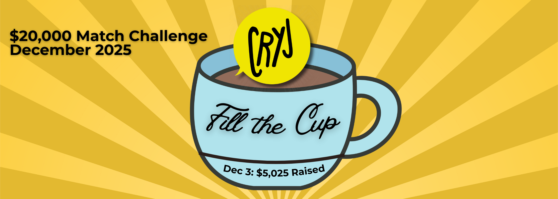 December Match Challenge! A generous donor has dedicated a $20,000 match to funds raised this month. Two long-time supporting foundations CRYJ has worked with are sunsetting this year, and we need a little extra to make up for that gap. Please consider a gift to help us “fill our cup” this holiday season!